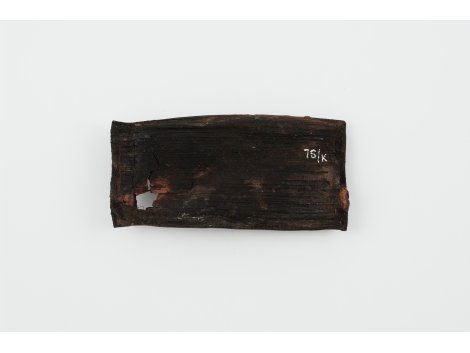 | Opis | Fragment drewnianego pudełka z resztkami tytoniu. |