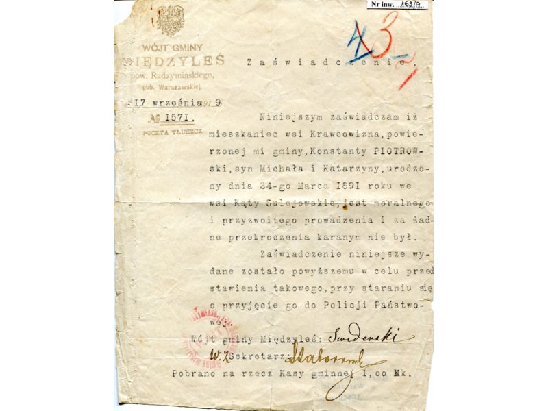 Fotografia st. post. PP Hieronima Prusinowskiego