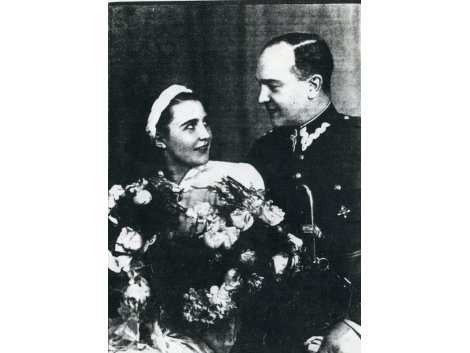 Włodzimierz Woyciechowski w mundurze porucznika z małżonką.