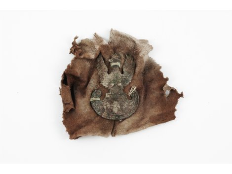 | Opis | Fragment furażerki z przyszytym nicmi orłem wz 1919 z koroną i krzyżem. |