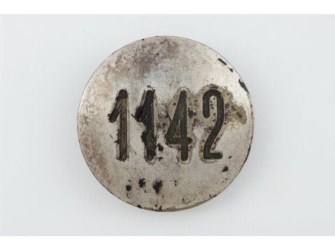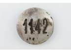 | Opis | Służbowy znaczek ewidencyjny Policji Państwowej nr 1142. Podkładka z napisem POLICJA PAŃSTWOWA nr 1142 - cyfra rzymska XI - /okręg poznański/. Nakrętka: J. CHYLIŃSKI WARSZAWA. |
