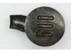 | Opis | Służbowy znaczek ewidencyjny Policji Państwowej nr 500. Na podkładce napis "Policja Państwowa nr 500", cyfra rzymska XI (okręg poznański).Nakrętka "J.Chyliński Warszawa". Przy odznace 6 cm pasek skórzany z otworem do guzika. |