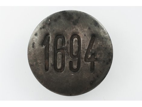 | Opis | Służbowy znaczek ewidencyjny Policji Województwa Śląskiego nr 1694. Na rewersie napis "Policja Województwa Śląskiego". Nakrętka z gwintem :"Fabryka Galanterii Metalowej Galmet Sosnowiec". |